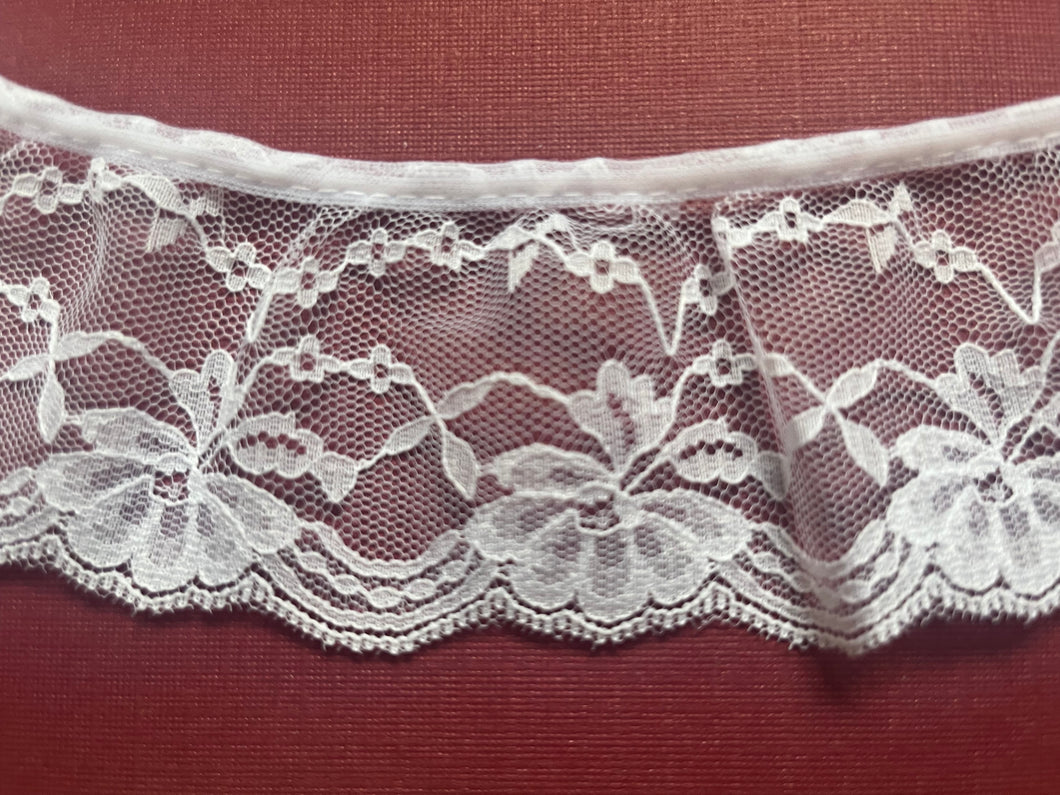 33 m Card White Quality Nottingham Frilled/Gathered Lace